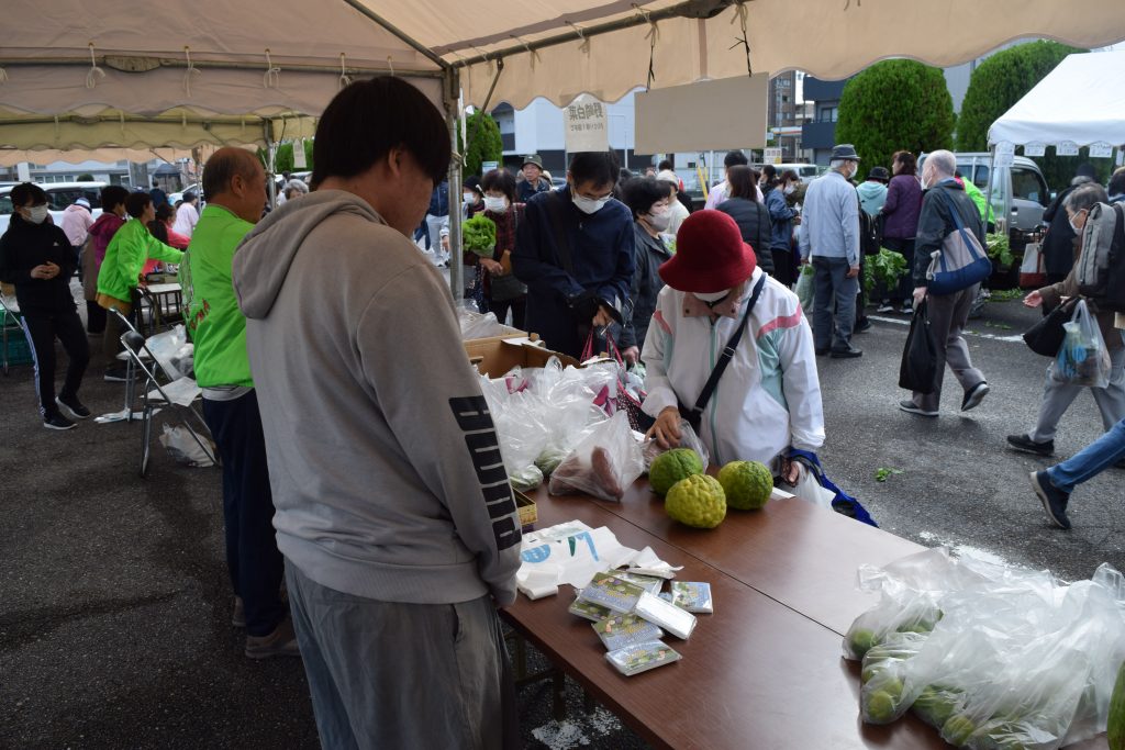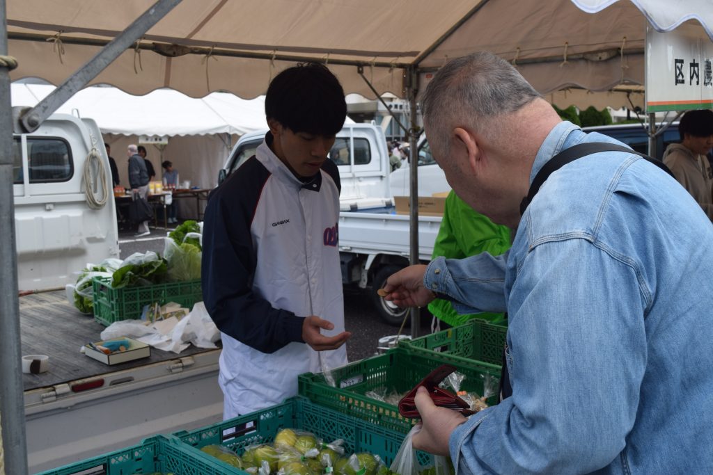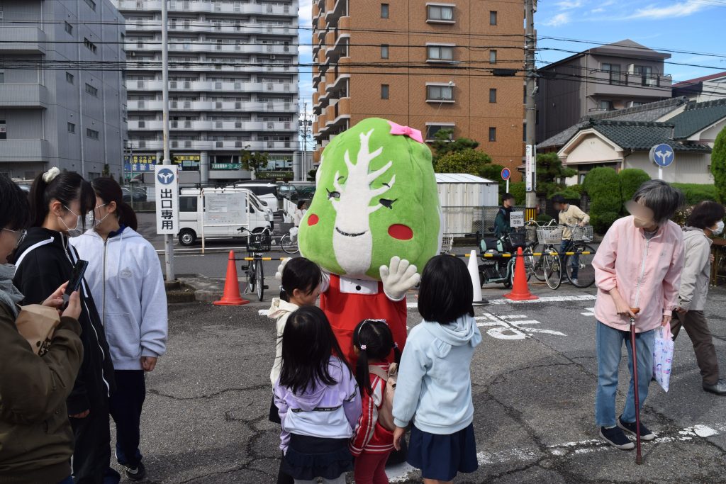 令和7年11月1日(土)中川区役所駐車場で行われた「中川区地産地消フェア」に、3年次生課題研究「エリアビジネスプロジェクト」のメンバーが参加しました。合わせてボランティア募集した生徒も加わり、地域の農家さんのブースのお手伝いを中心に活躍しました。野崎白菜のゆるキャラ「はくちゃん」も登場し、フェアを盛り上げることができました。