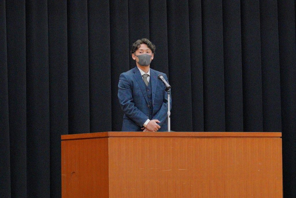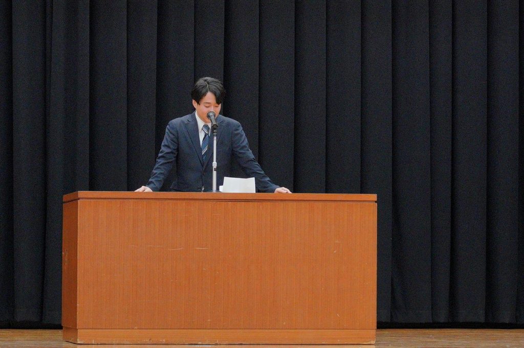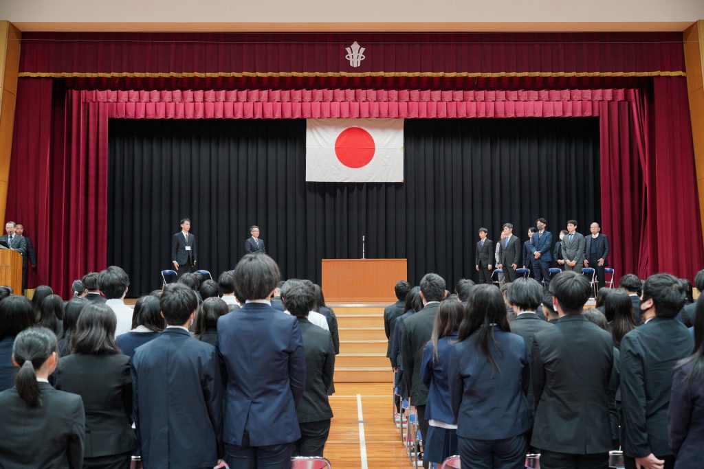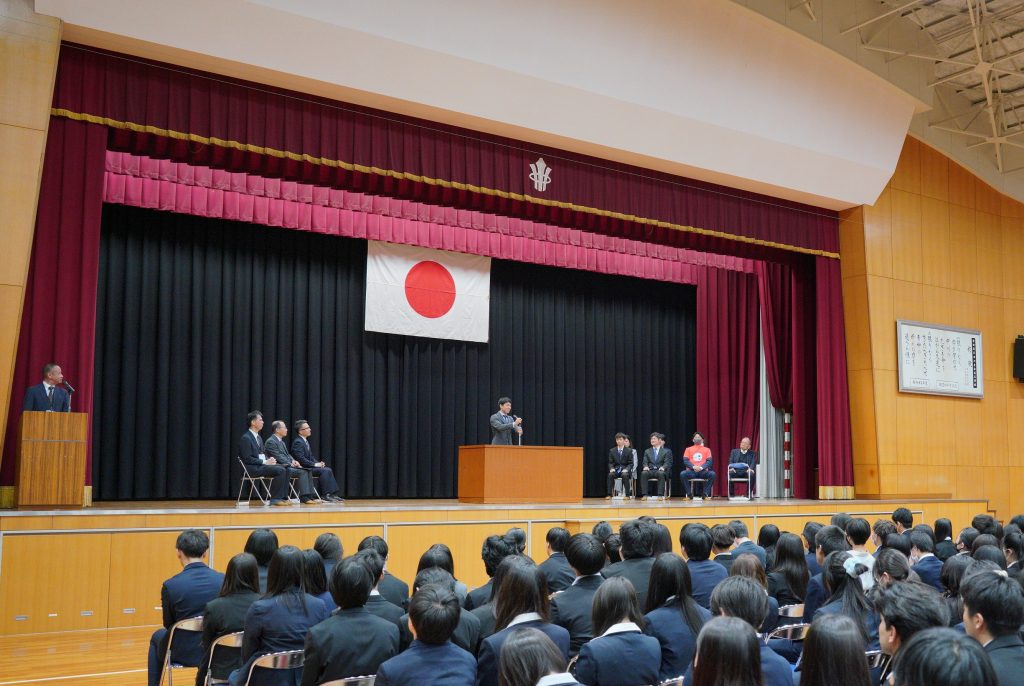 離任された先生方からは在校生に向けて、思い出話や最後のメッセージを伝えていただきました。その後、代表生徒が感謝の気持ちを込めて先生方に花束を贈り、最後に校歌を斉唱しました。